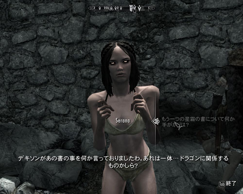 スカイリム 攻略 セラーナのページ スカイリムのnpc セラーナ serana について 概要 関連クエスト 居場所 最大ステータス perk 魔法 得意スキルなどの能力等をまとめた攻略情報ページです セラーナは主人公の従者にすることが可能なnpcです. 本記事は2019年4月22日に更新しました どうも しんま13です ニンテンドーswitchの the elder scrolls v. スカイリムの登場人物 セラーナ とは この辺とっても気になりますよね スカイリムの登場人物 セラーナ について解説します スカイリムの登場人物 セラーナとは ウチのセラーナ嬢 真紅のドレスが似合いすぎる スカイリム skyrim pic twitter.