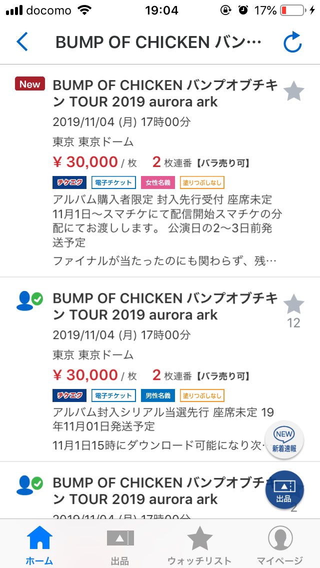 チケット流通センター bump of chicken バンプオブチキン.
