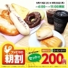 パンとコーヒーが セットで200円