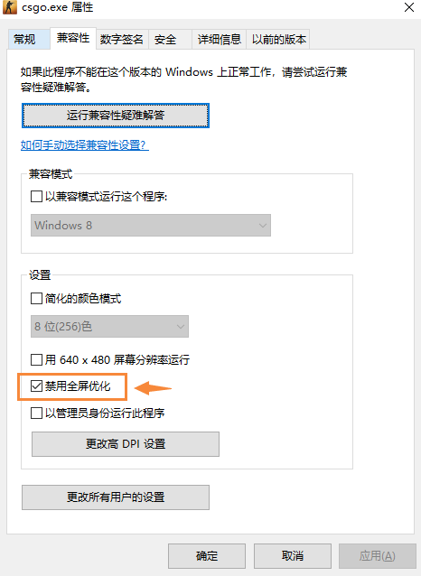 Csgo禁用全屏优化