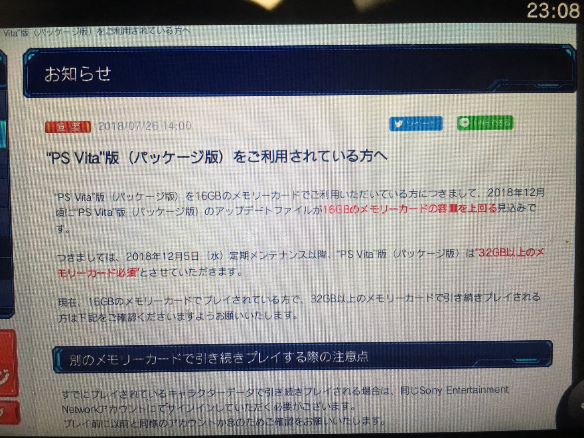 みぃちゃん على تويتر Pso2 Ps Vita 版 そろそろ限界かな 32gで容量
