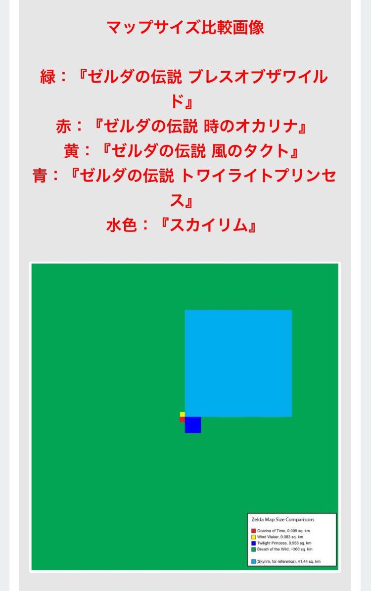スカイリム のマップ面積って ゼルダの伝説 と比べてどれぐらい広い